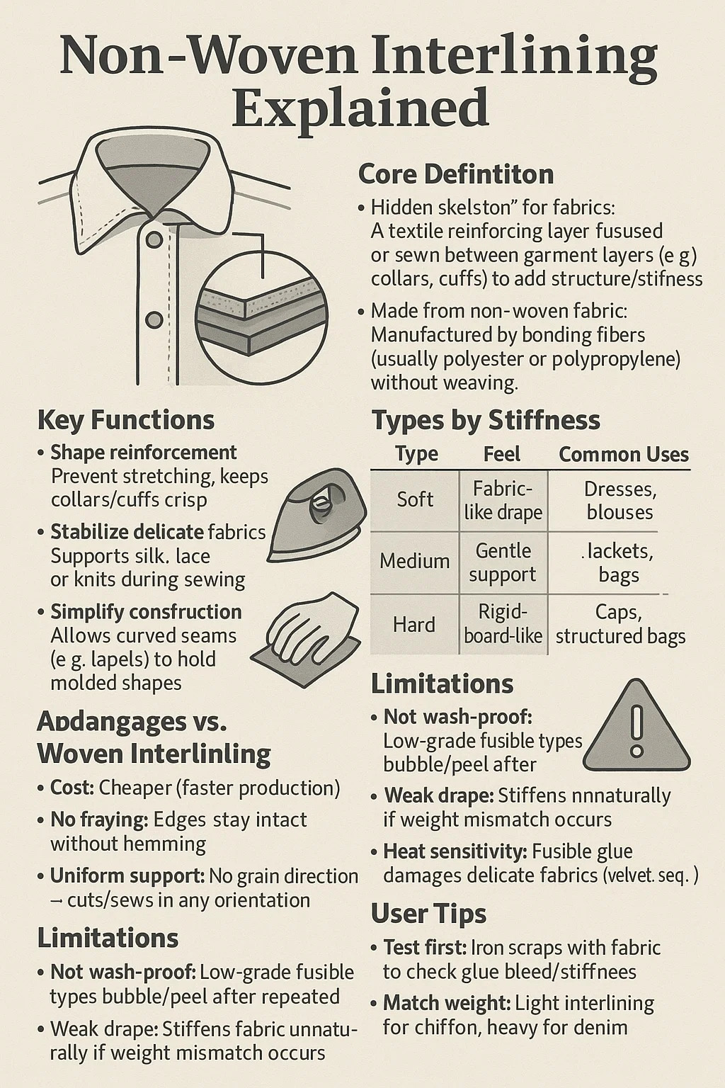 Sew-in Interlining: cucito tra strati di tessuto.